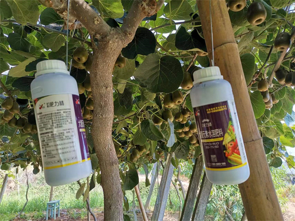 2022年7月25日,浙江嵊州市三界镇的倪大哥给我联系,说他们那边今年持续高温,旱的厉害,猕猴桃被晒的叶子掉了好多,涨势也不好,他心急的很,想看看有什么好的解决办法没,听了他的情况后,给他推荐了我们的淝力精,按照一亩地200g的量叶面喷施,间隔7天再喷一次。当时倪大哥也是抱着试试看的心态,收到货就开始试用了。