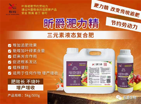 昕爵集团在生产实践中不断探索研究,隆重推出了叶面追肥新产品淝力精,这是一款新型的具有抗旱功能的液态复合肥,肥力长效能满足作物各种养分需求,抗旱抗涝抗病、亩增产高!