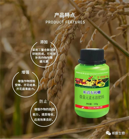 作物严重缺硼时,会直接影响到作物的叶、花、果以及茎的正常生长。多地市场验证,作物缺硼,坐果率严重偏低,在花前喷施昕爵有机硼,保 花保 果效果好,坐果明显得到提高。