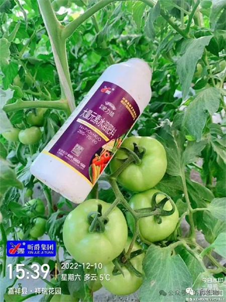 6月28号,老张老家的亲戚就收到了他寄回的一件淝力精,当时家里的番茄已经开始绑架,门果也核桃大小了,老张给家人交代了用量和方法,在每次开花前每壶水兑淝力精50-100毫升,还可以复配杀菌剂,杀虫剂。中间老张也没怎么过问使用效果,只是在中秋节打电话的时候,他问了一句淝力精还有没有了,他父亲说早就打完了,两门果都没打,吓他一跳,问父亲,是咋打的,他父亲说每壶水兑半瓶淝力精,他父亲满意的说:“使用后效果特别好,往年每层果都会疏果,只留四到五个果,今年年纪大了,累的不想疏果了,每层都留的七八个果,有的还有十来个,个个都是精品果,就连村子里的农资店都来打听我家番茄今年用的是啥肥。”