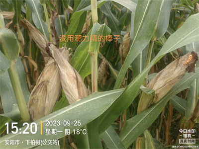 棒子特别大,而且籽粒饱满,没有找到秃尖儿的,而且玉米籽发亮。这一切都和昕爵淝力精有关系,它可以提高光合作用和透光率,促进有机质的合成,使营养物质向生殖器官输送,从而使玉米棒大、籽粒饱满、不秃尖儿。同时还使抽雄和开花期提前,促进早熟。另外增强抗旱、抗病、***能力,可使玉米叶片浓绿宽厚,植株健壮,增加千粒重,提高玉米产量,提高玉米的等级多收入!