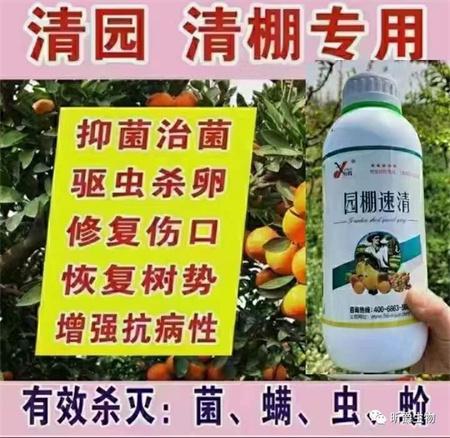 无论是家庭果园、大型果园,还是合作社、农业企业,“园棚速清”都能满足您的需求。我们凭借专业的研发团队、先 进的生产工艺和丰富的市场经验,赢得了广大果农的信赖与好评。选择“水溶肥厂家昕爵集团精心研制的果树高抗清园剂园棚速清”,全 面替代石硫合剂清园,混配性好,不受温度影响,全年都可以用,真菌细菌病毒一扫而光。