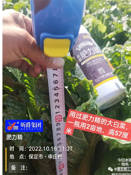 今天我们来说下,白菜包心,和高度的一些技巧,下图来自河北保定,图中正在测量用过淝力精的高度 ,从图片可以看出用过昕爵淝力精的白菜是60公分,没用的是40公分,而且品种,播种时间,天数都是一模一,但是结果是不一样的。