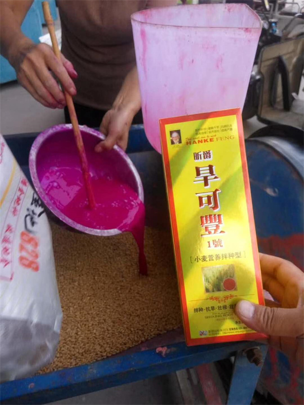 如小麦专用型旱可丰1号种衣剂,是一款集抗旱、抗虫、壮根、壮苗、增产为一体的生态型种衣剂,克服了普通拌种剂只抗虫不抗旱的缺点,在我国不同地区小麦的试验和示范都取得了特别好的效果。