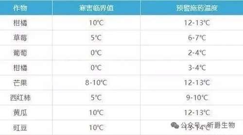 部分作物的寒害临界值