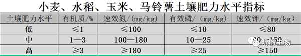 对于土壤肥力水平的确定,有两种途径。一是求助当地农业技术部门进行测土配方,在拿到测土配方数据后,可依据下图对照确定。